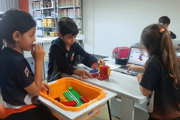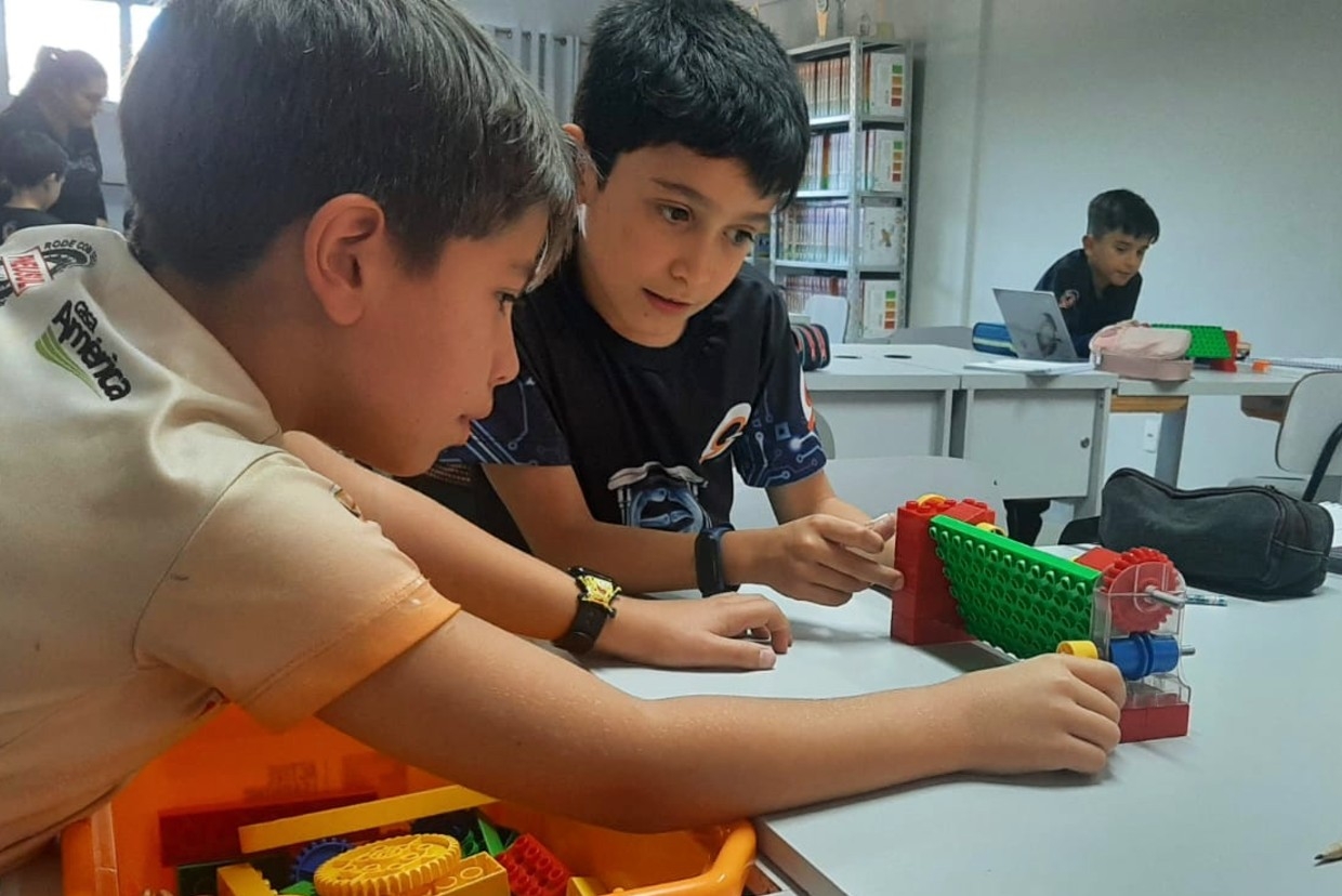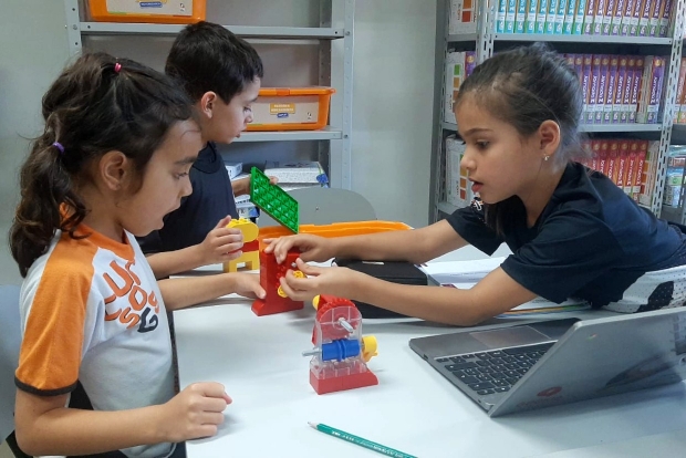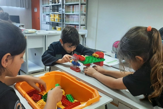 aula de Lego, os alunos do 2º ano do Ensino Fundamental I (Turma F22), da