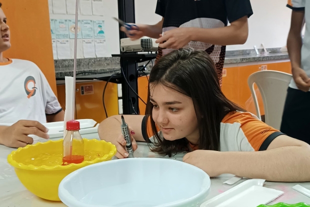 a aula, os alunos tiveram a oportunidade de construir um termômetro, colocando