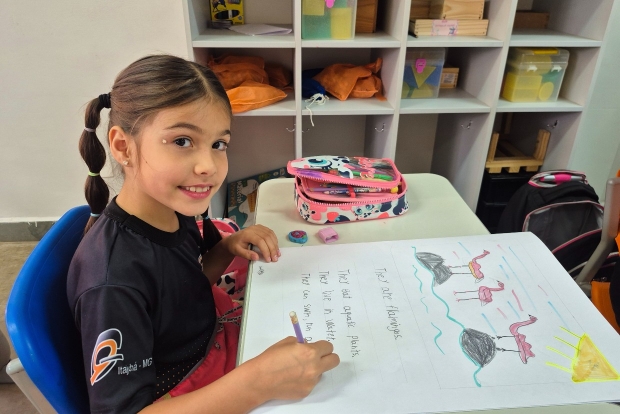 Em todas as aulas as propostas são conduzidas em inglês através de comandos e exemplos para que os alunos pratiquem o idioma. Os alunos exploram temas, utilizando tecnologia, textos e imagens, o que permite o contato com a língua e a ampliação do conhecimento de mundo.