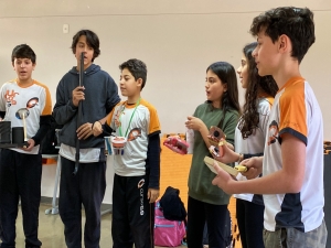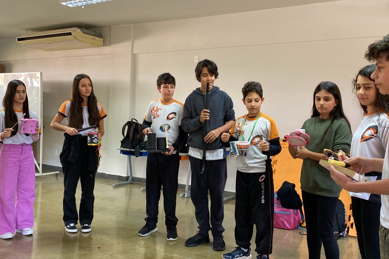 um trouxe seu instrumentos e o apresentou à turma. Depois, os alunos foram
