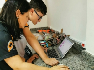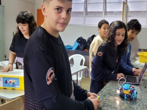 estudantes aprenderam como ligar o robô e compreenderam o funcionamento das
