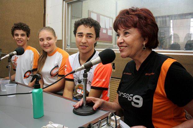 Alunos do Curso G9 e a diretora Pedagógica da escola, professora Maria Aparecida Fernandes, participaram de entrevistas em rádios de Itajubá para falar sobre a Feira do Conhecimento 2015, em 7 de outubro. O grupo foi entrevistado pela jornalista Celia Rennó, no programa “Informativo 987”, da Rádio Jovem FM; e por Nilda Bitencourt, no programa “Nilda e Você”, da Rádio Futura FM.