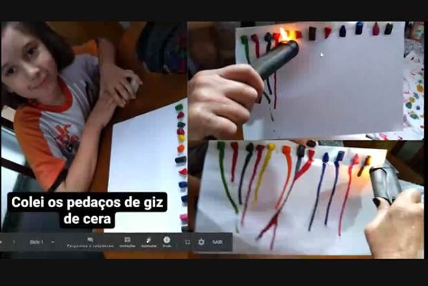 minha apresentação, eu fiquei com vergonha, mas aí eu desliguei a câmera. Mas,