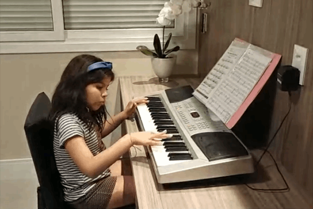 virtual. Gravar o vídeo foi engraçado, e minha mãe me ajudou muito. Na hora da