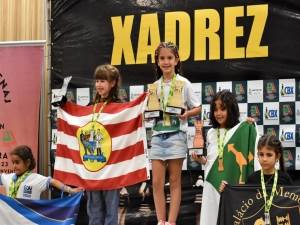 A aluna do 3º ano do Ensino Fundamental I (Turma F31), Giovanna Almeida Magalhães, conquistou dois títulos nacionais e um vice-campeonato na Categoria Sub-08 Feminino durante competição organizada pela Confederação Brasileira de Xadrez (CBX) em Natal/RN. O evento reuniu, entre os dias 03 e 07 de maio, 250 enxadristas de todo o Brasil.
