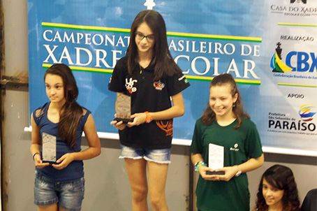 A aluna do 6º ano do Ensino Fundamental ll do Curso G9, Vivian dos Santos Carvalho, garantiu o 1º lugar na categoria Ensino Fundamental Feminino. Já o aluno do 3º ano de Ensino Fundamental l, Renan de Souza Stockler Morais, foi o campeão na categoria Ensino Fundamental Masculino. Com as vitórias, o Curso G9 tem em seu histórico três campeões brasileiros: Pedro Esteban Arango (2012), Vivian dos Santos Carvalho (bicampeã 2013/2015) e Renan de Souza Stockler Morais (2015).