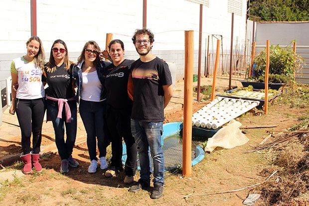 Professoras do Curso G9 participaram de capacitação sobre Aquaponia, com o objetivo de aprender como essa ferramenta funciona para usarem na sala de aula. A atividade aconteceu na horta da escola, em 31 de julho, e foi ministrada por um aluno da Universidade Federal de Itajubá (Unifei) que faz parte do projeto implantado na escola.