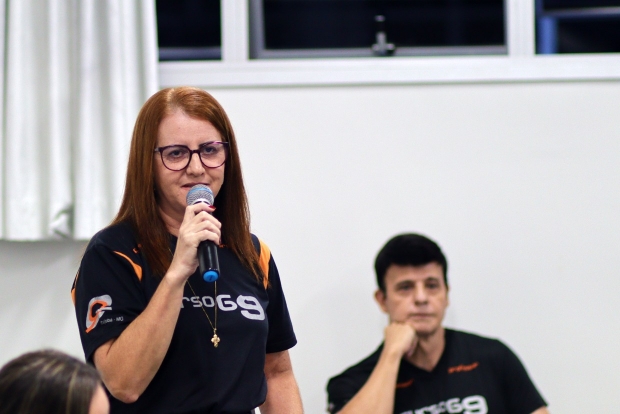 pedagógica do Curso G9, que deu as boas-vindas às famílias e destacou a