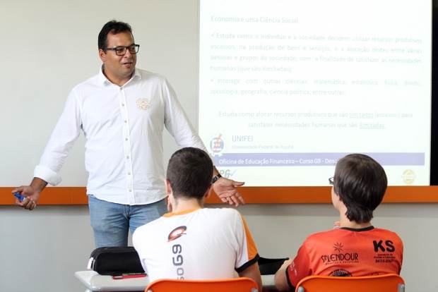 Os convidados para o encontro foram os professores da Universidade Federal de Itajubá (Unifei), André Medeiros e Moisés Vassallo. Eles fazem parte do Denarius, órgão que integra o Núcleo de Pesquisa e Desenvolvimento em Educação Financeira da universidade.