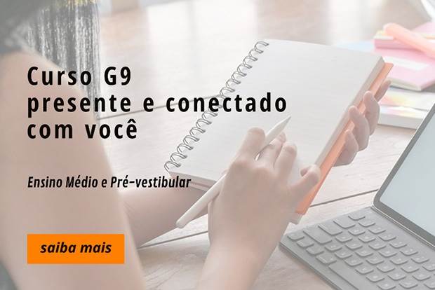 O Ensino Médio e o Pré-vestibular do Curso G9 se adaptaram rapidamente à nova realidade imposta pela quarentena e, uma semana depois do seu início, retomou as atividades pedagógicas de forma remota. Primeiro, passou a usar as plataformas que já integram o portfólio do colégio e, no passo seguinte, firmou parcerias com a Geekie One e Google for Education.
