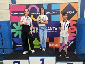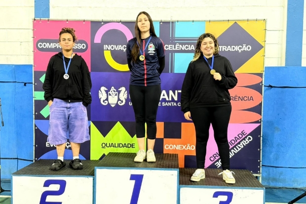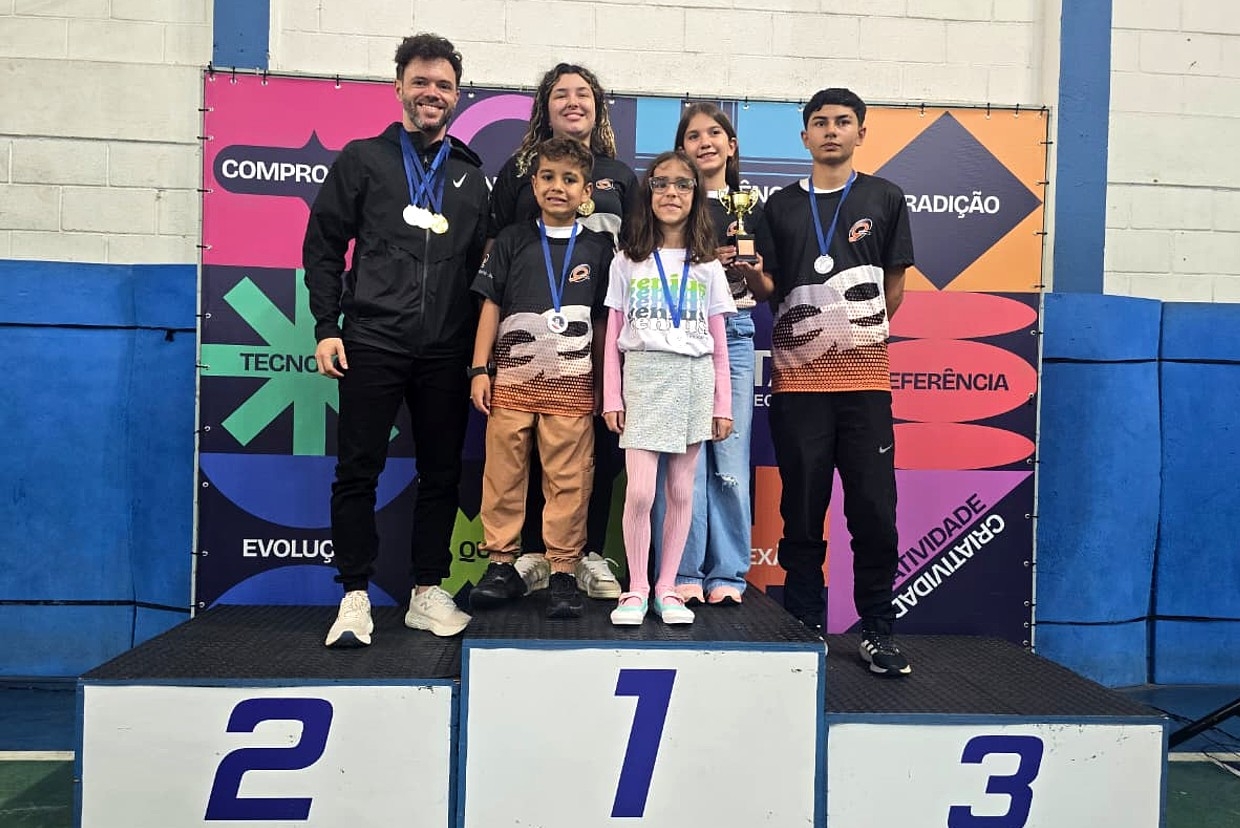 agosto. Todos os cinco atletas subiram ao pódio: a aluna Giovanna Almeida foi campeã