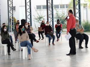 Funcionários da área administrativa do Curso G9 participaram nesta terça-feira, 30 de junho, de mais uma palestra sobre maneiras de se prevenir a Covid-19. O tema foi abordado pelo médico dr. Arlei Sebastião Xavier Júnior, da Continua Singular Assessoria em Saúde, que atua na área de Saúde e Segurança do Trabalho. Durante o bate-papo, os funcionários usaram máscara e mantiveram o necessário distanciamento social, conforme orientação das autoridades de saúde.