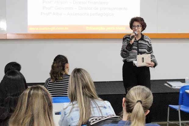 “A nossa missão tem que ser conjunta. O consórcio família-escola é fundamental, principalmente, para a valorização da educação, que é tão preciosa na nossa vida”, disse a diretora Pedagógica do Curso G9, professora Maria Aparecida Fernandes.