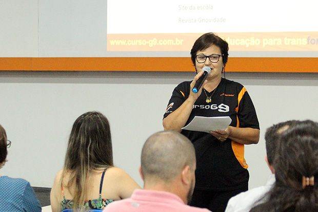 A diretora pedagógica do Curso G9, professora Maria Aparecida Fernandes, disse aos presentes que a escola tem como propósito oferecer aos alunos espaços e oportunidades de aprendizagem. “Nosso colégio quer formar cidadãos com uma mentalidade lógica e crítica. O conhecimento pelo conhecimento não tem valor nenhum. Os alunos devem unir o conhecimento com o respeito ao próximo”, ressaltou.