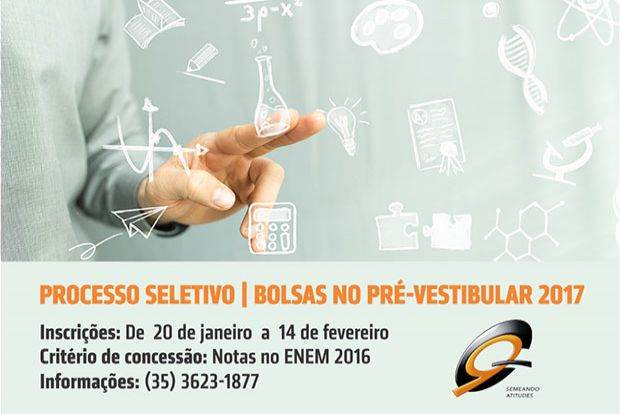 Curso G9 oferece bolsas de estudo para alunos que ingressarem no Pré-vestibular em 2017. As inscrições para o processo seletivo devem ser realizadas entre 20 de janeiro e 14 de fevereiro pelo e-mail bolsa@curso-g9.com.br.
