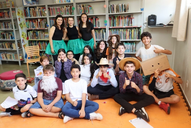 No 3º trimestre letivo, durante as aulas de Literatura com a professora Cláudia Fortes, os alunos do 7º ano do Fundamental II (Turmas F71 e F72) do Curso G9 se dedicaram à leitura do livro “A Turma da Rua Quinze” da Coleção Vaga-Lume. Para enriquecer o estudo, os alunos entrevistaram a auxiliar de biblioteca, Juliana Aparecida da Silva, sobre a importância da leitura. Em seguida, organizaram a Festa do Livro – Coleção Vaga-Lume. Cada aluno leu um livro diferente da coleção, escolheu um personagem para se caracterizar e resumiu a história no dia da festa. A apresentação final aconteceu na Biblioteca, em 28 de novembro.“O projeto é uma oportunidade para os alunos se envolverem profundamente com a literatura. Ao lerem diferentes obras da Coleção Vaga-Lume e se caracterizarem como personagens, eles não apenas desenvolvem suas habilidades de leitura e interpretação, mas também estimulam a criatividade e a empatia", explicou a professora.Saiba mais sobre o segmento neste link.