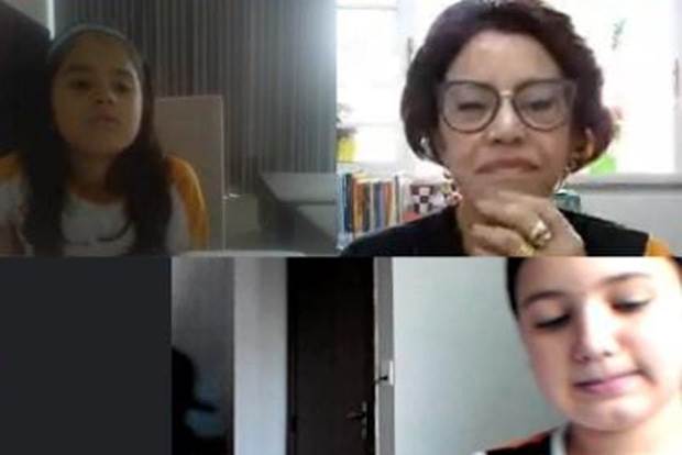 Quem não gosta de ouvir histórias? E ouvir histórias com os colegas de sala, mesmo que virtualmente, todos também gostam. E, quando são contadas por uma senhorinha muito especial, essas histórias são ainda mais encantadoras, certo?