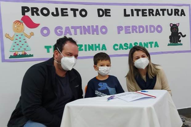 Os alunos do Maternal, de acordo com Jéssica Dias, fizeram um reconto musical e os alunos dos Jardins trabalharam a reescrita da obra em estudo, inseriram mais um personagem na narrativa e produziram um livro, com texto e ilustrações próprias. “Para culminância do projeto, fizemos um agendamento prévio com as famílias para entrega presencial de uma lembrança, uma pelúcia do personagem principal da história, e para o autógrafo do livro produzido pelos pequenos escritores das turmas dos Jardins. Orientamos às famílias a seguirem o protocolo sanitário, com o uso obrigatório de máscara, higienização das mãos com álcool e distanciamento social”, disse.