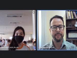 parte do trabalho, os alunos participaram de uma roda de conversa com o professor Cleber Marinho. Durante o