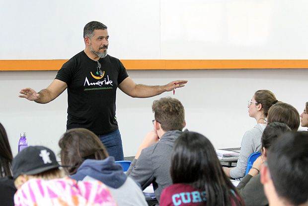 A outra atividade aconteceu durante a aula de Espanhol, realizada semanalmente aos alunos que se interessam por esse idioma. Alexander Albarrán apontou curiosidades da gramática e da pronúncia de sua língua mãe, desenvolvendo uma aula divertida e interativa.